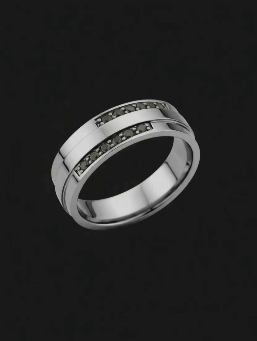 Anel ouro negro paladinado 18k. Maravilhoso anel maciço de ouro negro paladinado com design exclusivo e diferenciado. Anel com linhas retas, estrutura central levemente em desnível e acabamento externo polido. Produto feito à mão.