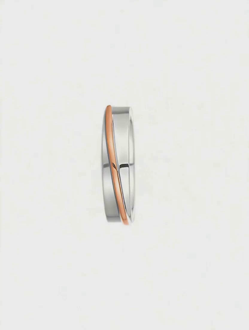 Aliança de casamento de ouro branco paladinado 18k com fio de ouro rosé. Aliança com estrutura reta e detalhe em ouro rosa.