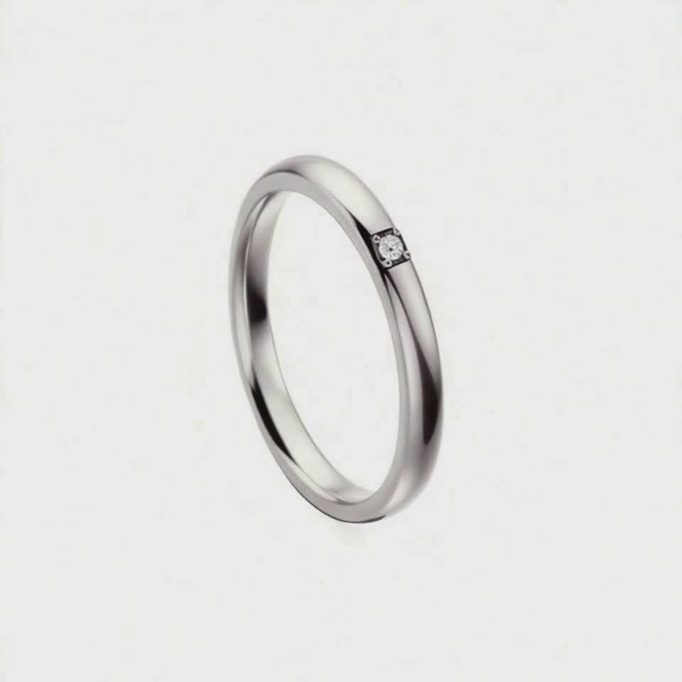 Aliança abaulada em ouro branco 18k. Aliança design tradicional com diamante em cravação quadrada. Acabamento interno levemente anatômico. Produto feito à mão.