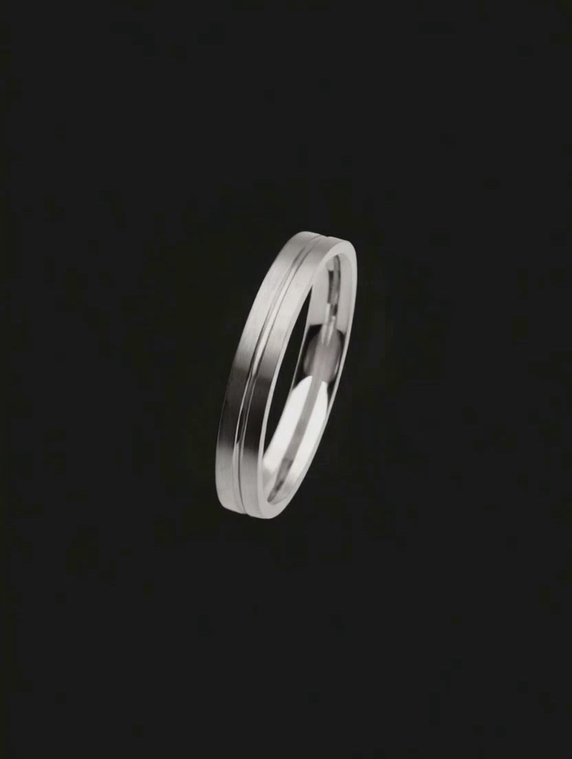 Aliança ouro branco paladinado 18k. Moderno e elegante modelo de aliança reta e acabamento externo fosco.