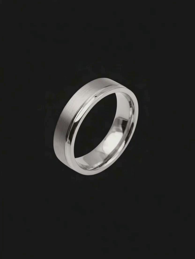 Aliança reta em acabamento fosco-acetinado e polido em ouro branco paladinado 18k. Produto feito à mão.