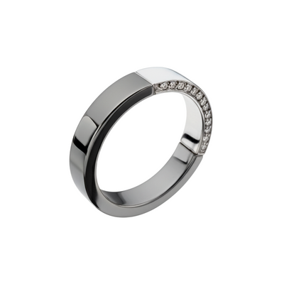 O tom profundo e sofisticado do ouro negro 18K oferece uma estética moderna e singular, destacando-se pela sua originalidade e distinção. Celebre seu amor com uma beleza marcante e uma exclusividade inquestionável.