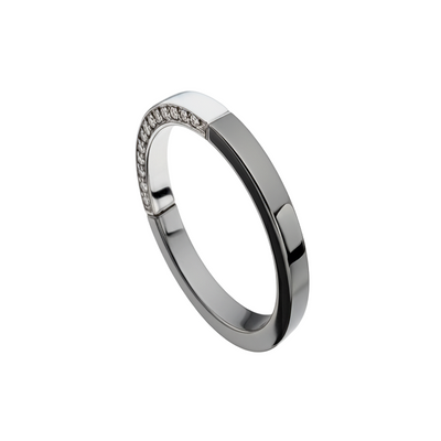 O tom profundo e sofisticado do ouro negro 18K oferece uma estética moderna e singular, destacando-se pela sua originalidade e distinção. Celebre seu amor com uma beleza marcante e uma exclusividade inquestionável.