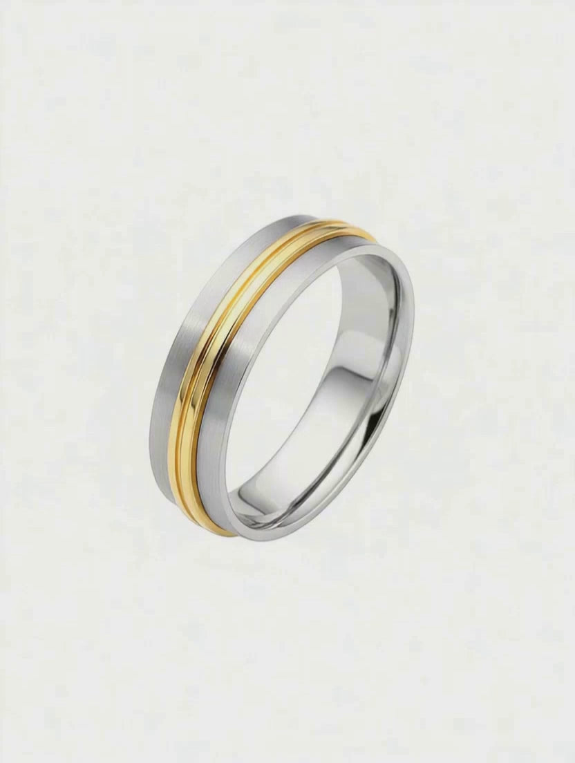 Aliança ouro branco e amarelo 18k. Modelo de aliança diferenciado com acabamento interno levemente anatômico, acabamento fosco acetinado na parte ouro branco e polida na parte ouro amarelo. Produto feito à mão.