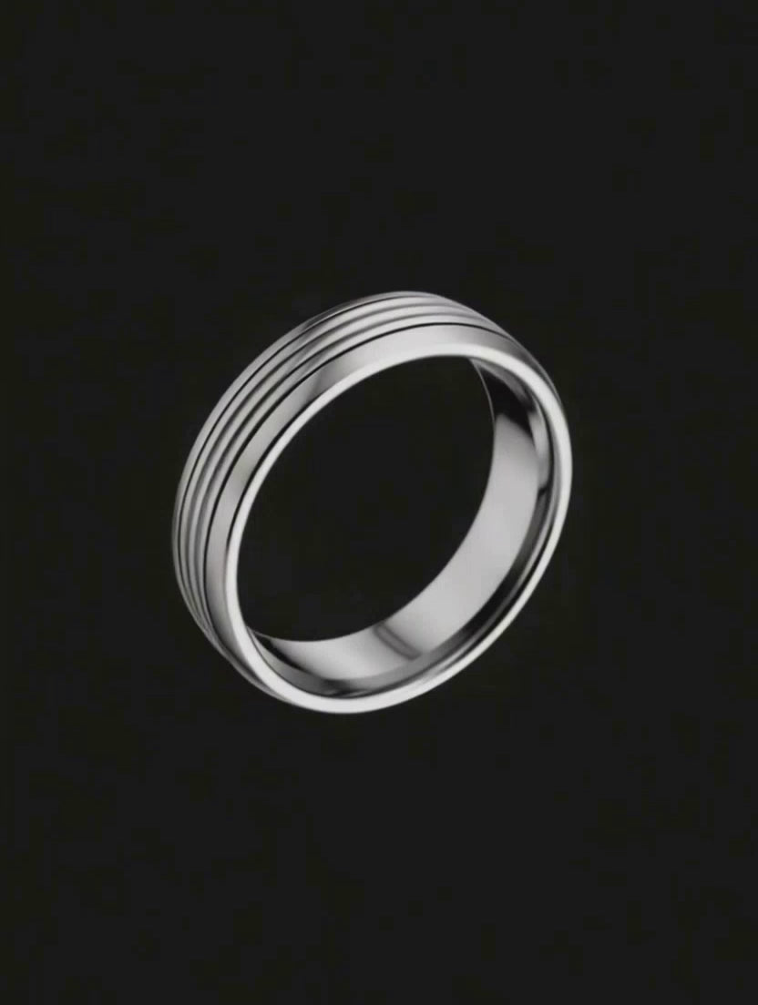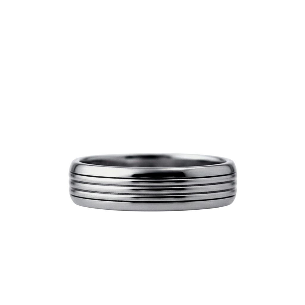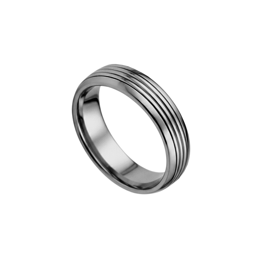 Anel masculino em ouro negro paladinado 18k. Anel com estrutura abaulada e frisos paralelos.