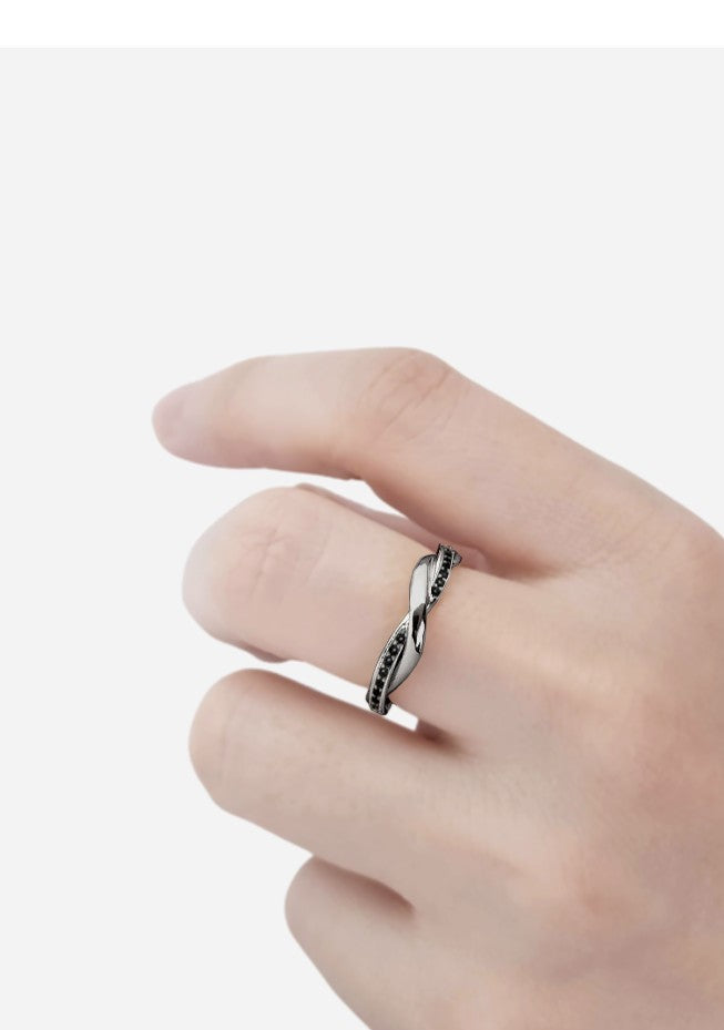Aliança com Diamantes Negros, Entrelaçada em Ouro Negro Paladinado - AURA