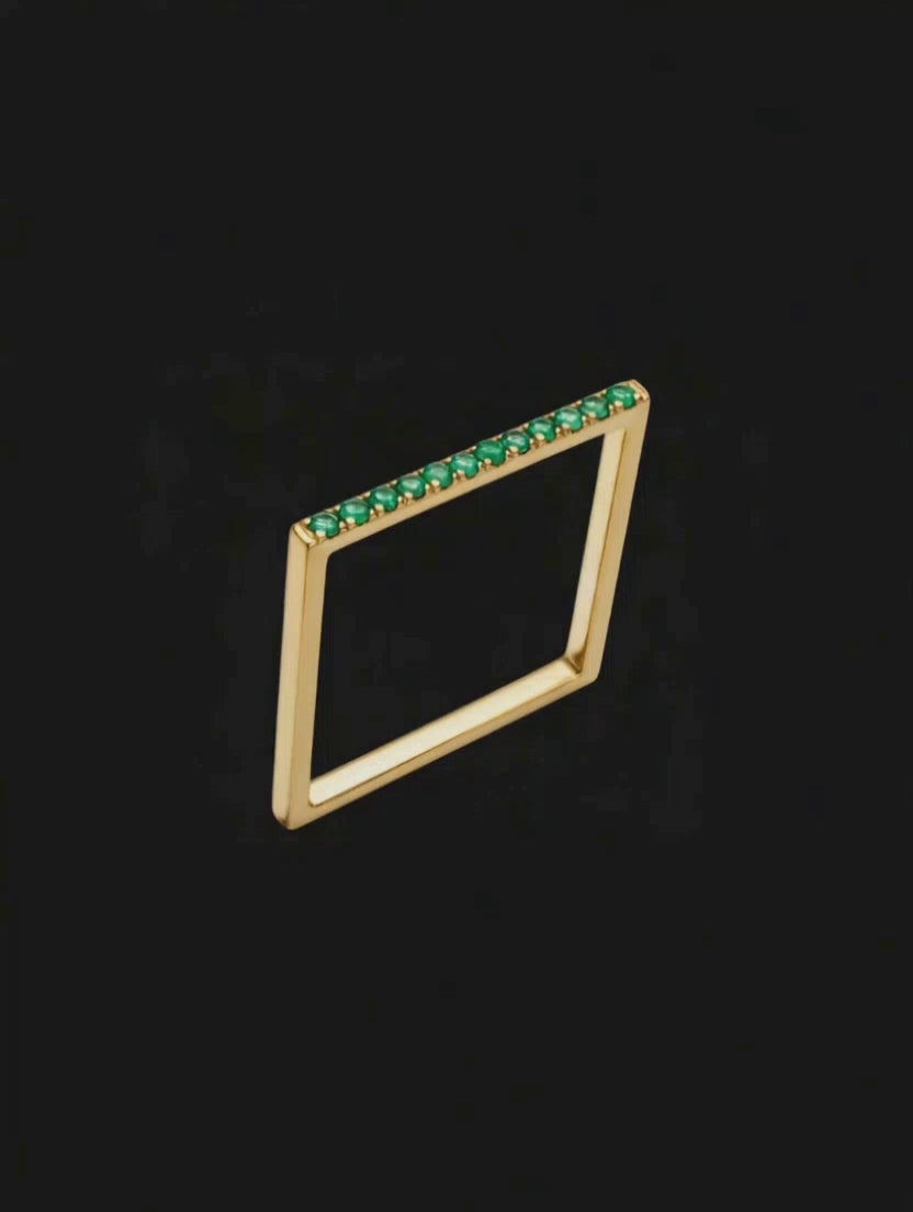 Anel quadrado de ouro amarelo 18k e esmeraldas. Junte 2 ou até 4 anéis da linha MADISON e obtenha um visual diferenciado.