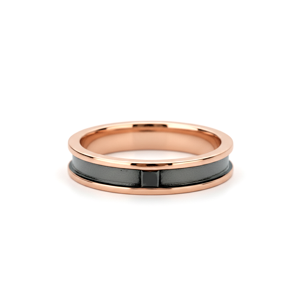 Aliança de ouro rosa e ouro negro paladinado 18k. Acabamento fosco acetinado na área de ouro negro e polida no ouro rosa. Aliança maciça de ouro com design exclusivo e diferenciado. Produto feito à mão.