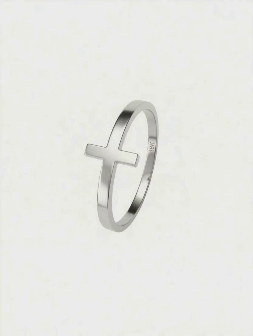 Anel cruz de ouro branco paladinado 18k. Anel sofisticado e moderno com motivo de crucifixo.